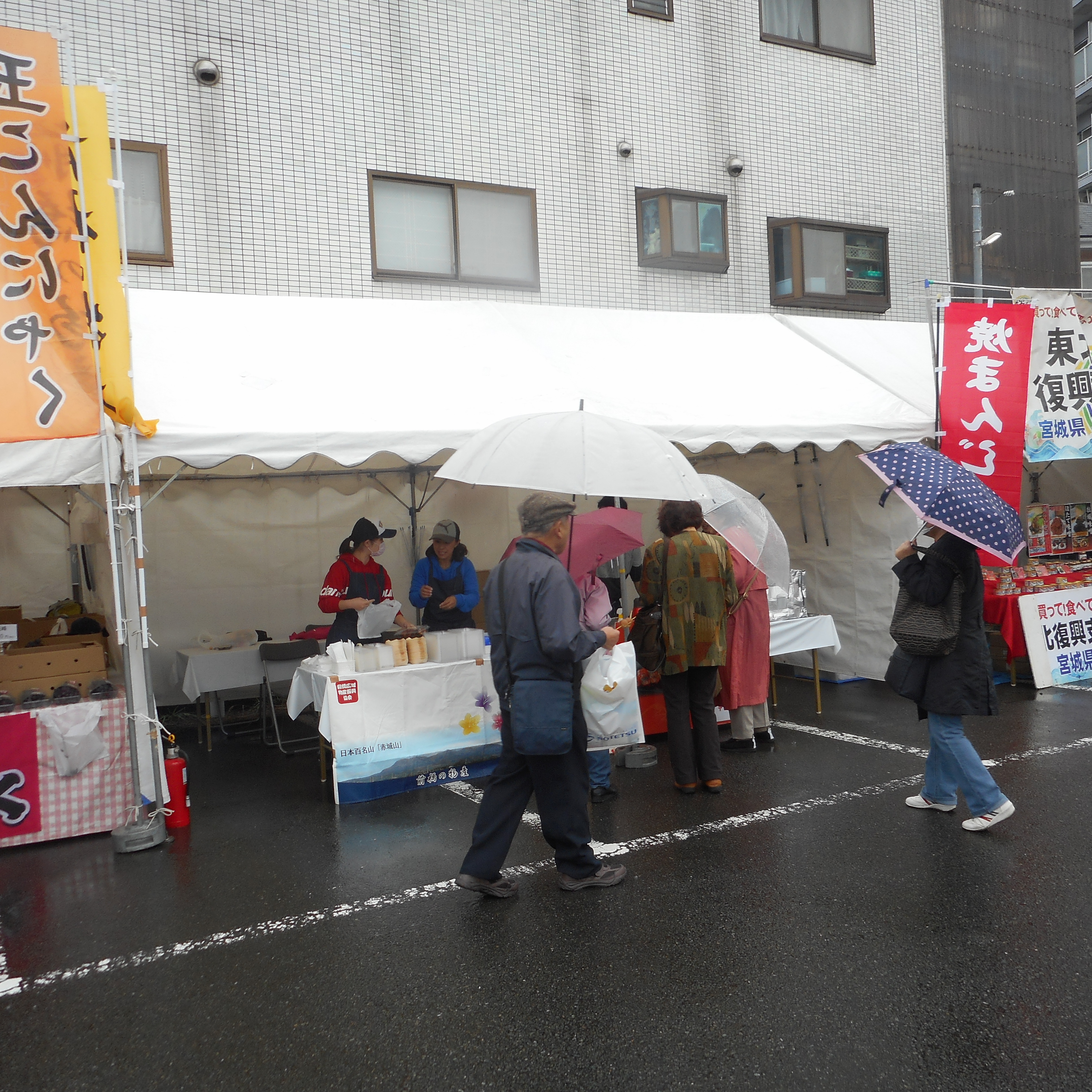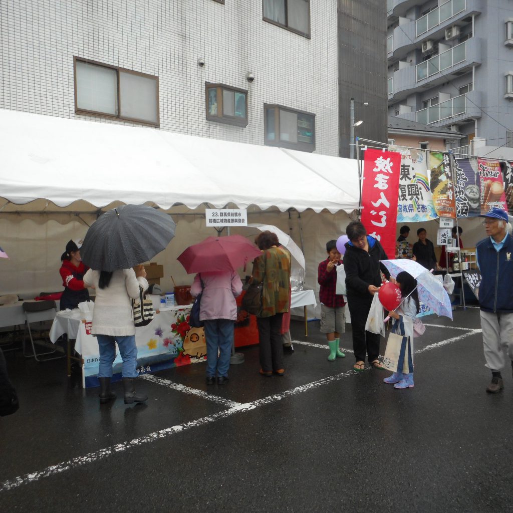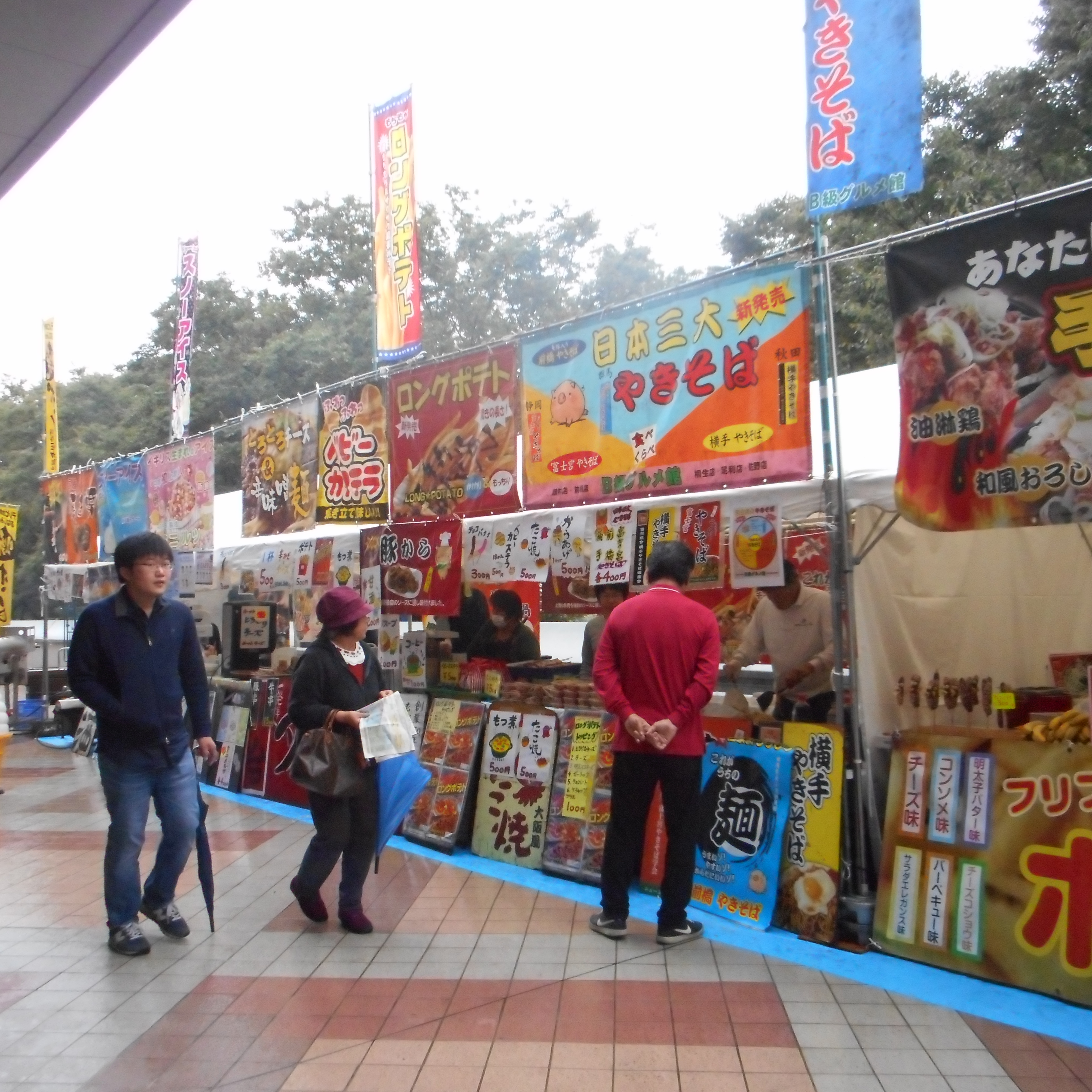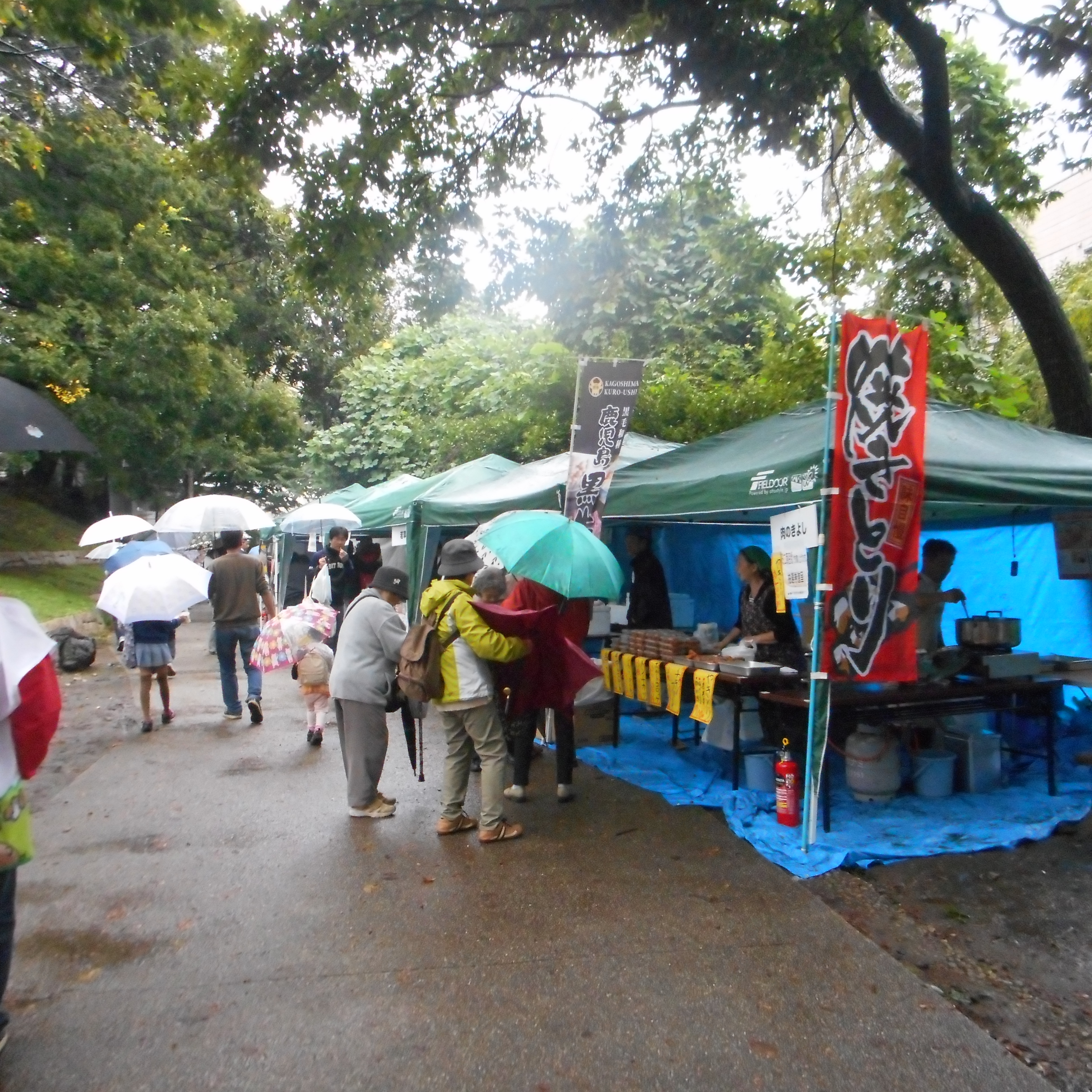 毎年出店している横浜旭区。今年も人気の焼きまんじゅうをと要望され出店してきました。いつもなら物凄い人で焼きまんじゅうのテント前には行列が出来るのですが・・あいにくの雨。人出はイマイチでした。午後には更に雨脚が強くなり寒い一日でした。