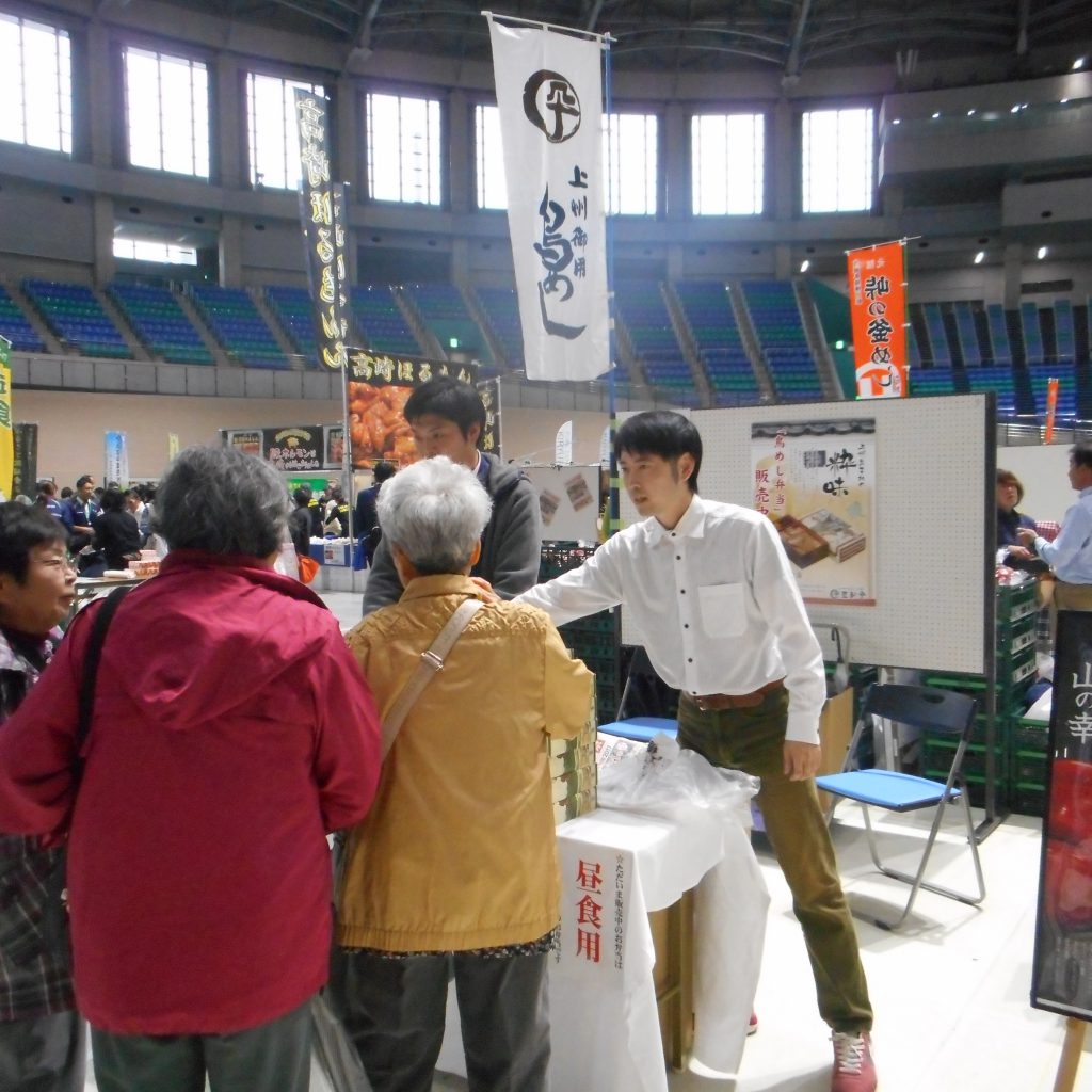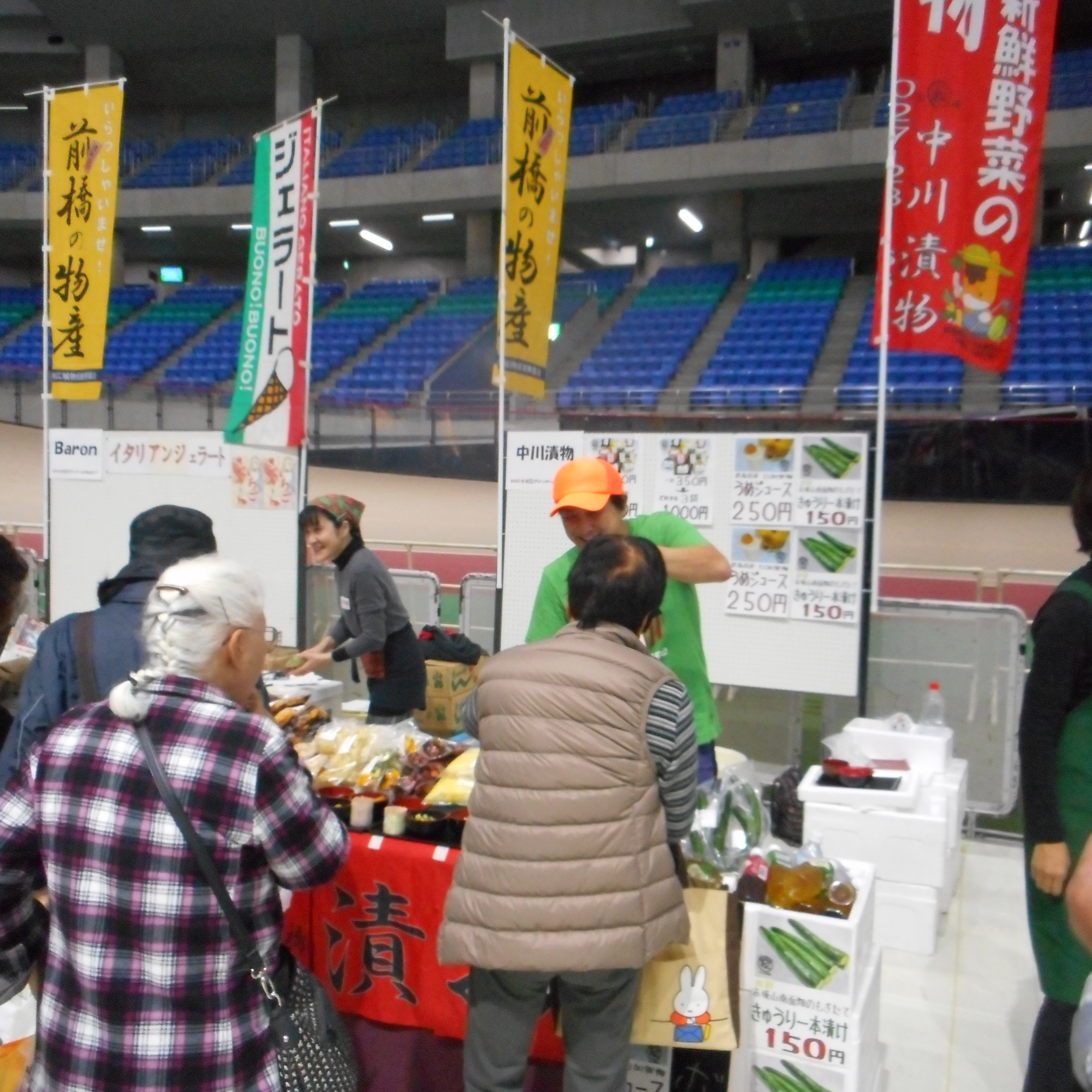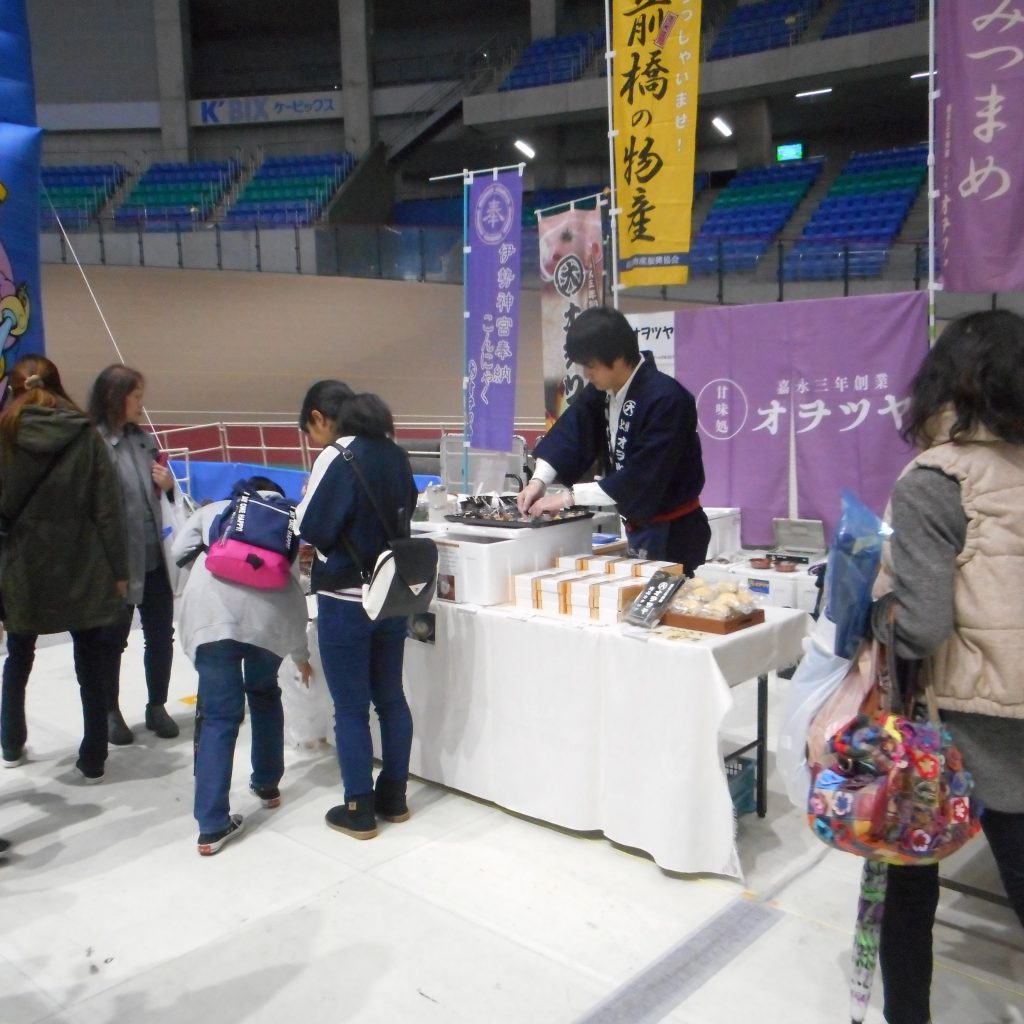物産館での2度目の出店です。今年もたくさんの競輪ファンに前橋のお土産を買っていただきました。