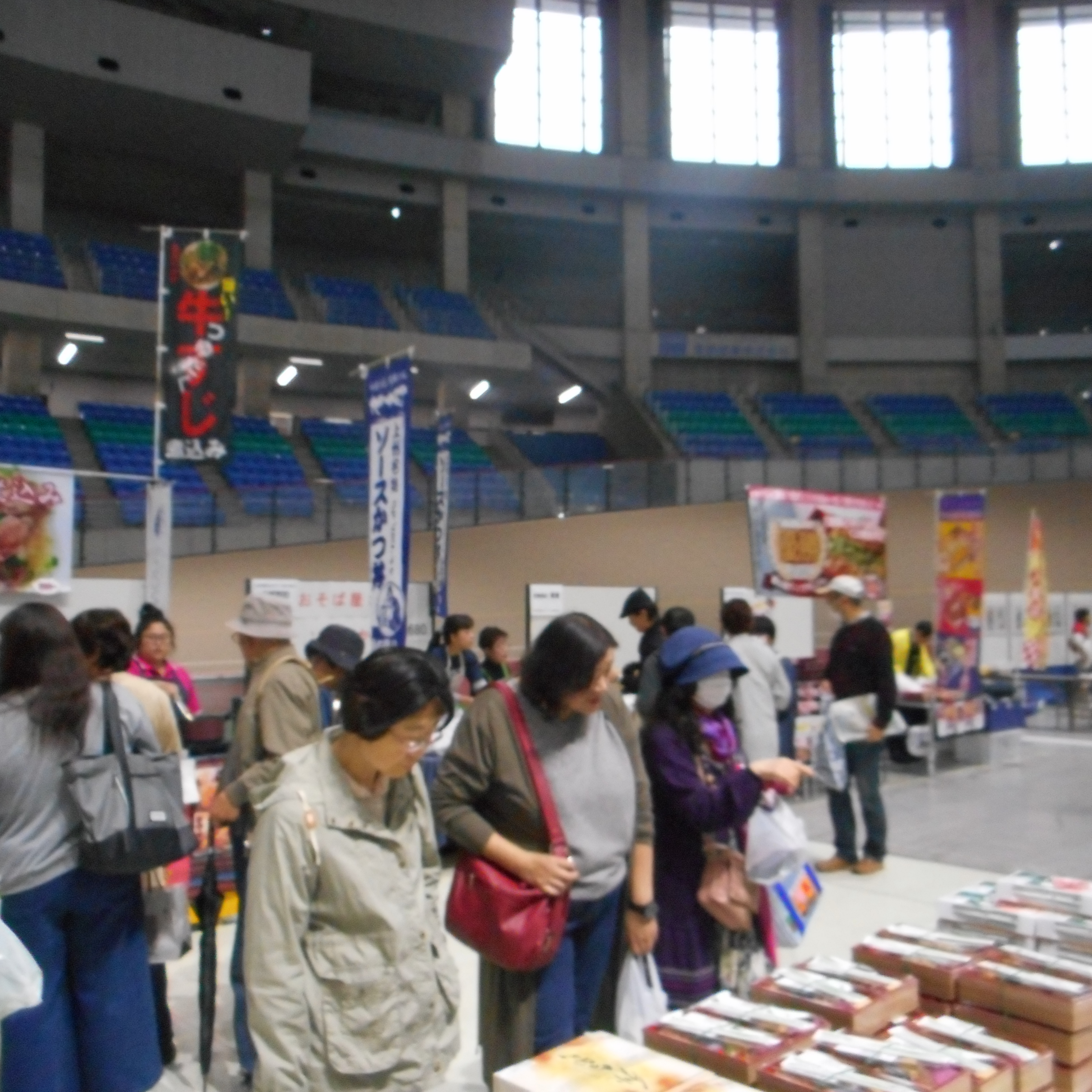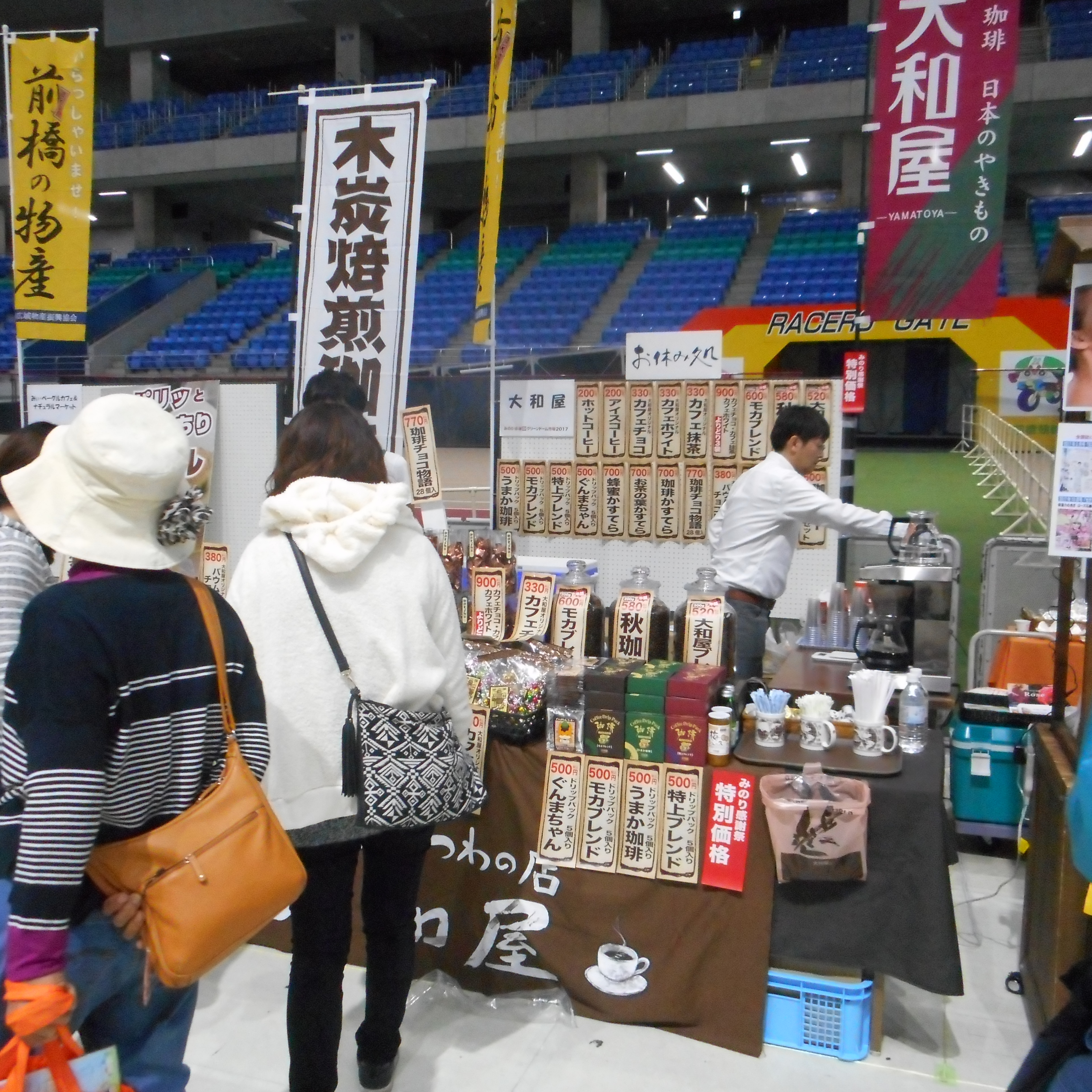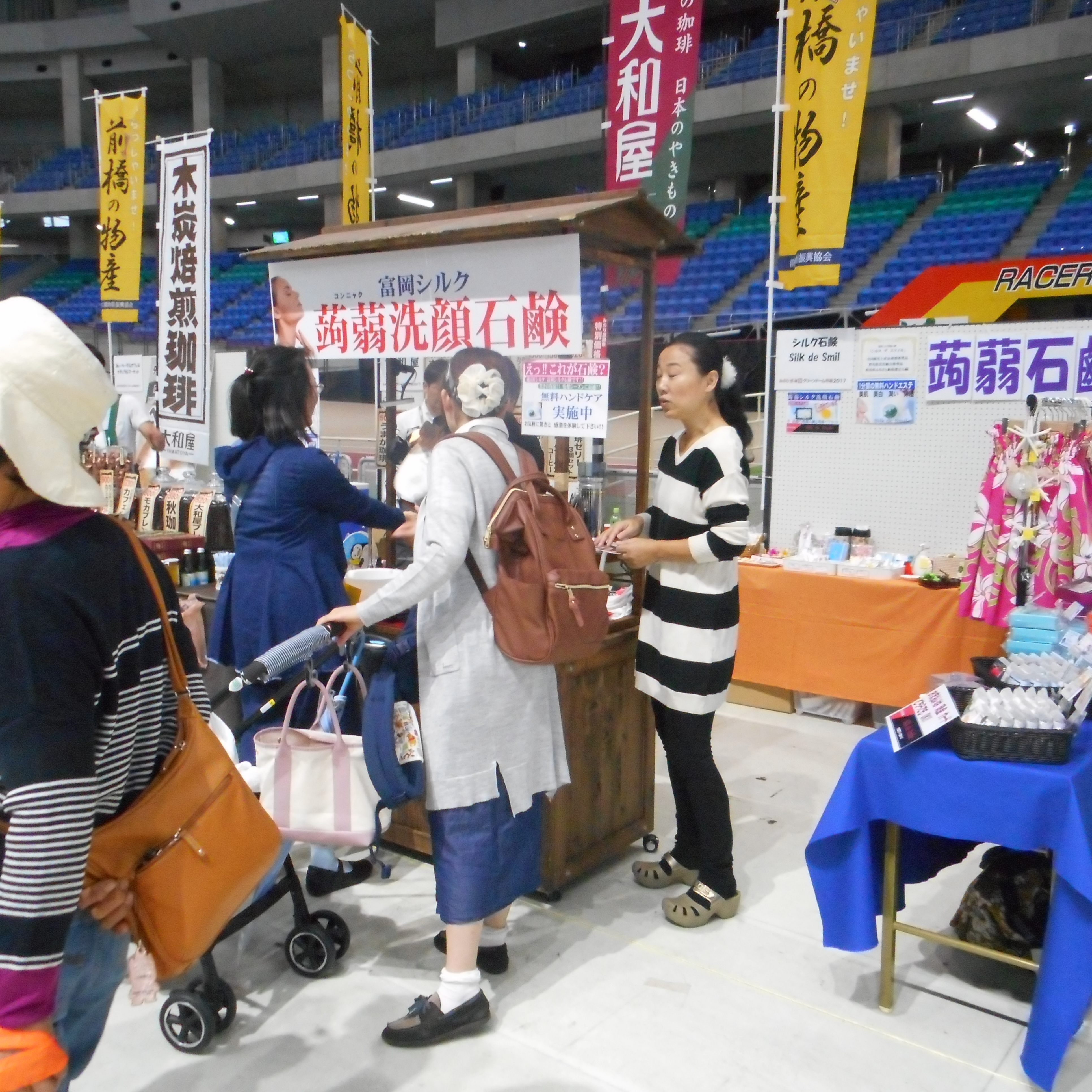 物産館での2度目の出店です。今年もたくさんの競輪ファンに前橋のお土産を買っていただきました。