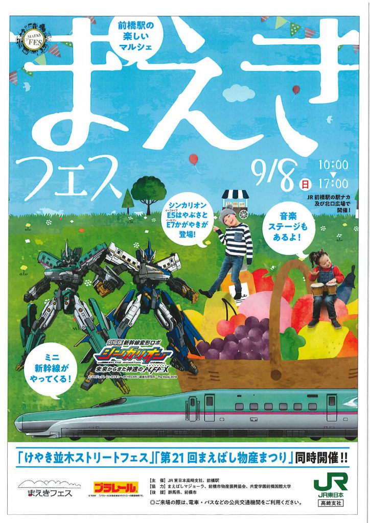 9月8日(日)午前9時から午後5時まで、前橋駅北口駅前広場・駅内コンコースで「第21回まえばし物産まつり」を開催します。「まえきフェス」「けやき並木フェス」と同時開催。物産まつりでは、会場で500円毎、お買い上げの方にガラポン抽選券1枚差上げます。抽選会場は物産館VentoMaebashi入口です。1等の方にはVentoMaebashiでの商品券5,000円!その他嬉しい商品をたくさん揃えてお待ちしてます。