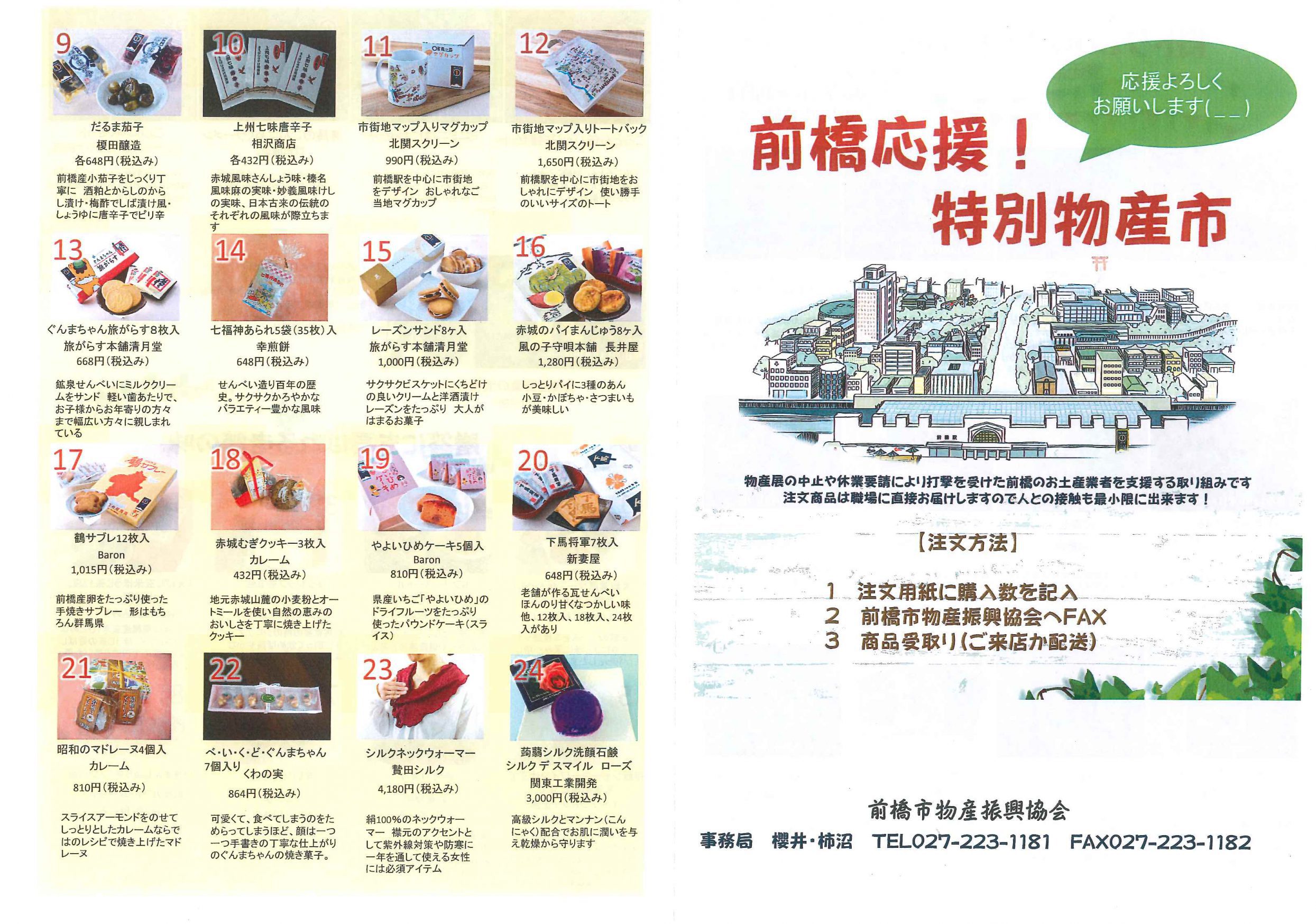 このカタログ販売では、新型コロナウイルスの影響を受けている土産業者を応援することと、この機会に地元前橋にある銘菓、名産品を知っていただきたいと思い企画いたしました。