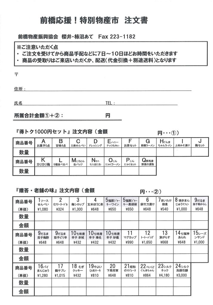 このカタログで購入していただき、皆様の温かいご支援をいただけたら幸いです。カタログ希望の方は店舗(前橋駅構内 物産館「ヴェントまえばし」)に来店していただくか、ヴェントまえばし(TEL027-223-1181)にご連絡ください。