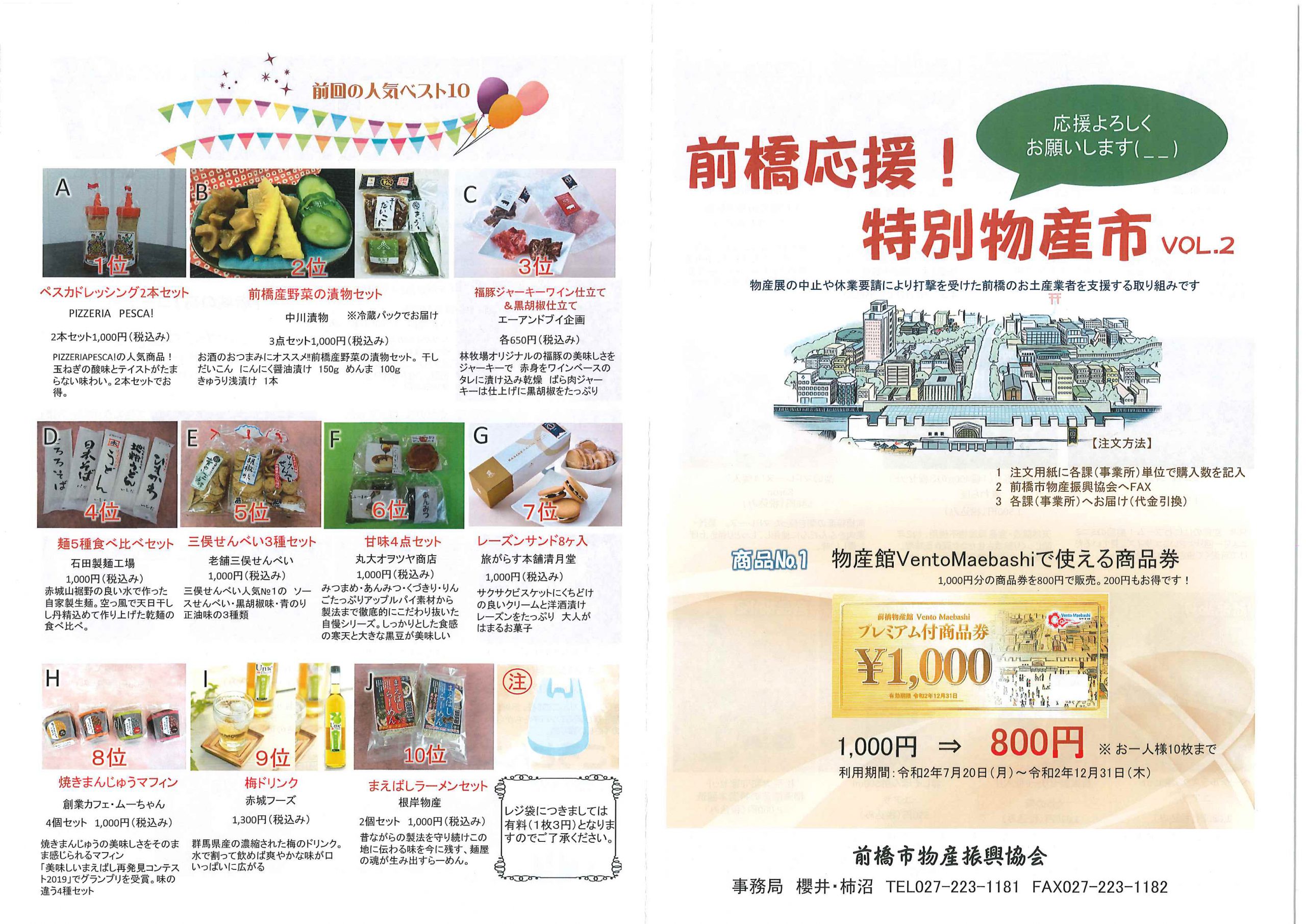 この機会に地元前橋にある銘菓、名産品を知っていただけたら幸せに存じます。また、まだ紹介されていない前橋ならではの商品、地元で愛され続けている商品、地元素材を使った商品等数多くの名産品を掲載した「前橋応援!特別物産市VOL.2」を企画いたしました。