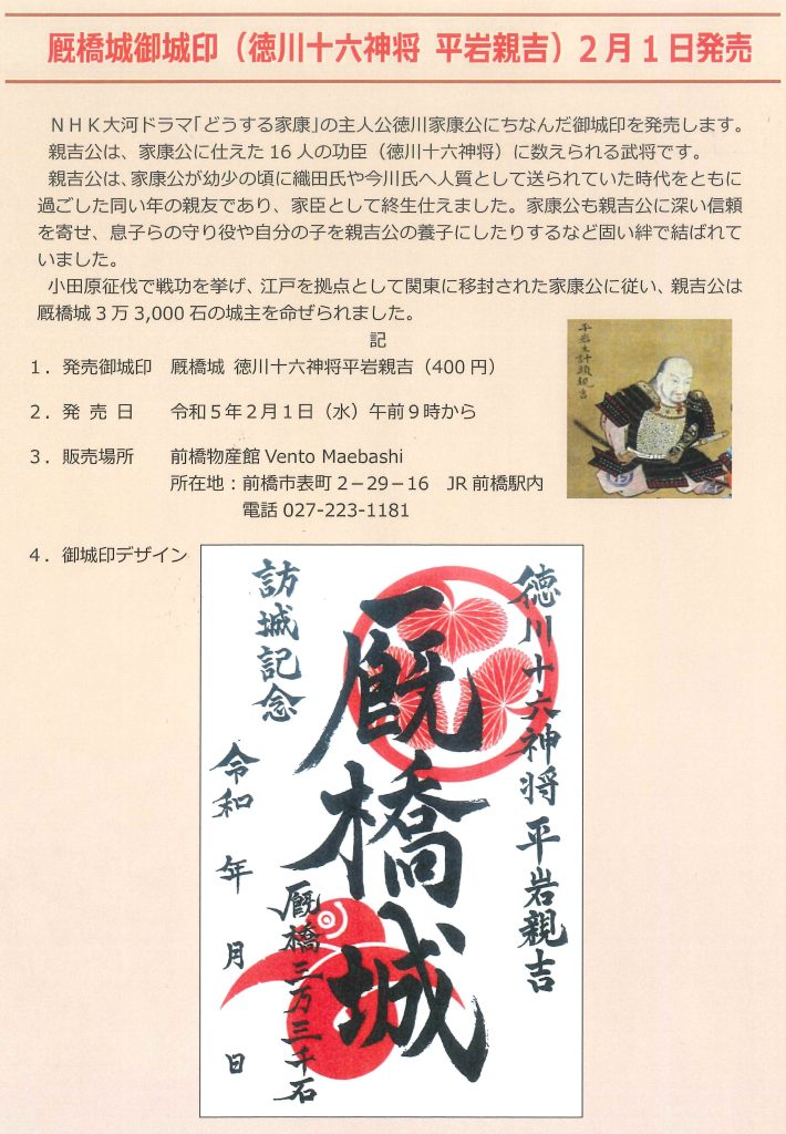2月1日発売!前橋城御城印 徳川十六神将「平岩親吉」