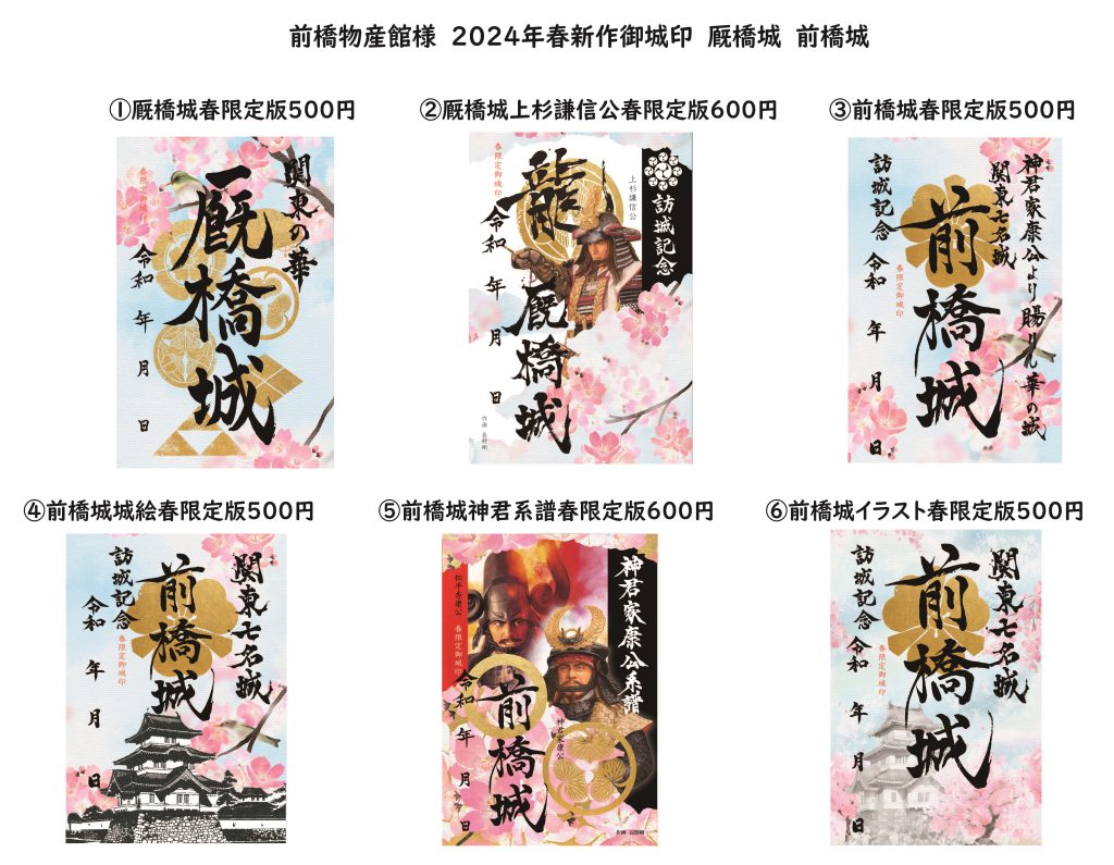2024年春新作御城印(厩橋城・前橋城)6種類3月1日発売!